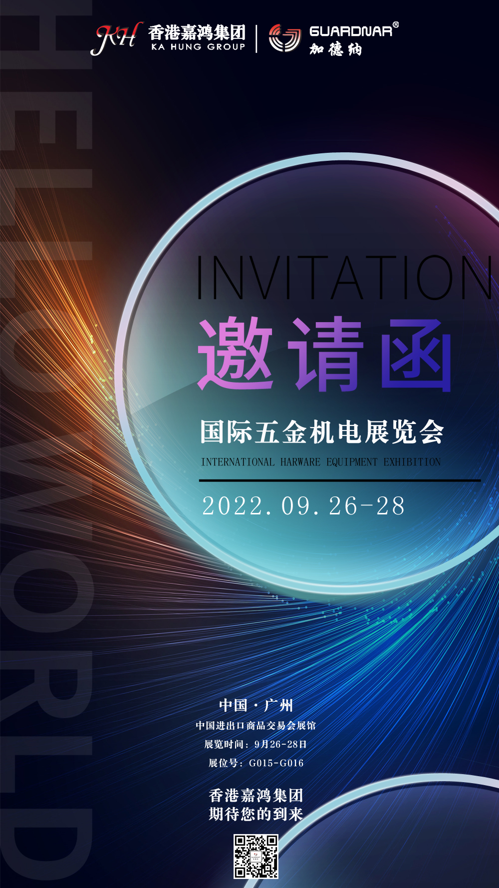 中國(廣州)國際五金機(jī)電展覽會(huì)將于2022年9月26日-28日在廣州舉辦,特此邀請您蒞臨參觀和指導(dǎo)!