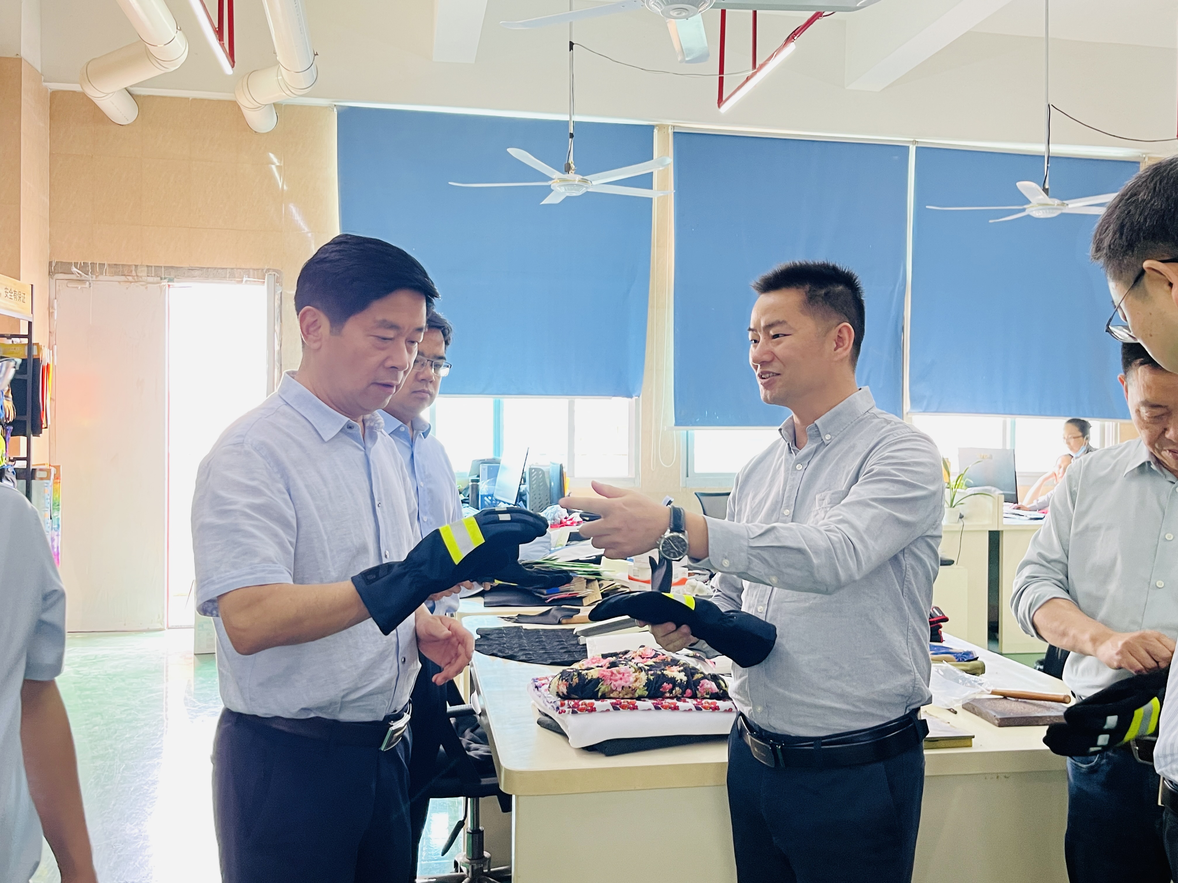 考察組一行實(shí)地調(diào)研考察生產(chǎn)車(chē)間、樣板開(kāi)發(fā)室和樣品展廳