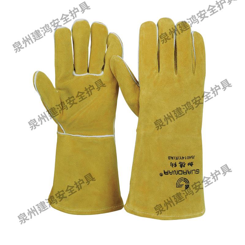 隔熱焊工防護(hù)手套,梔形拇指,牛皮加強(qiáng)掌面,加長袖口長14cm,可有效防護(hù)機(jī)械風(fēng)險,防火防燃、抗傳導(dǎo)熱與接觸熱,同時可防止小滴熔化金屬濺射。
